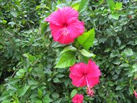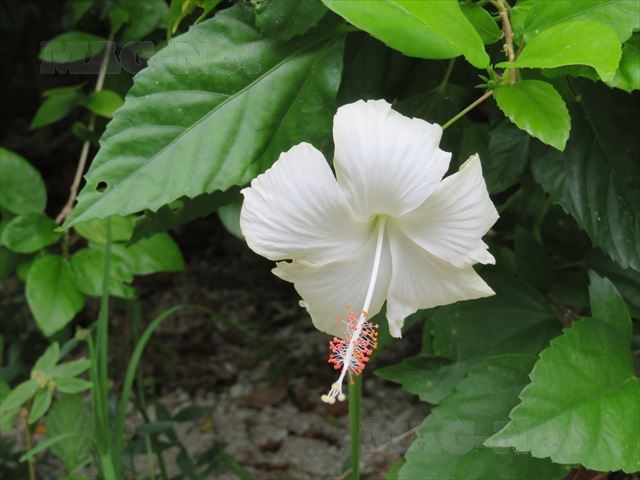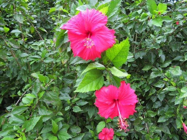 ハイビスカスも、赤や白、ピンクと様々な色のものが咲いています。
