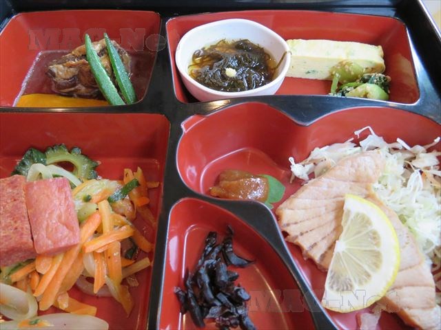 ゴーヤチャンプル、豚肉で作るラフテーなどが詰まった定食です。
