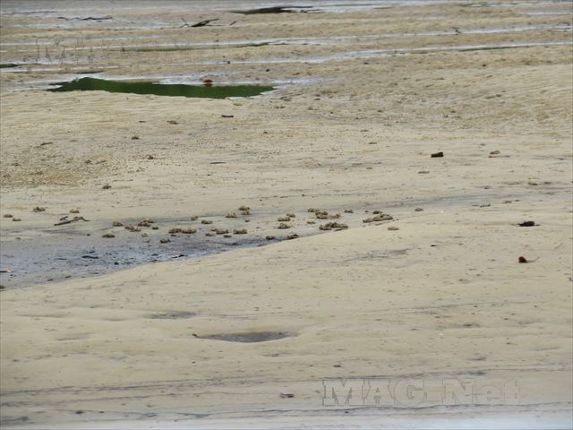 川辺に溜まった砂の上に、無数の小さく動くものがいます。