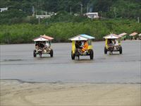 砂浜には水牛車がずらりと並んでおり、そのうちのひとつに乗り込みます。