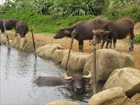 その他にも島内には水牛車を曳く水牛も、骨を休めています。