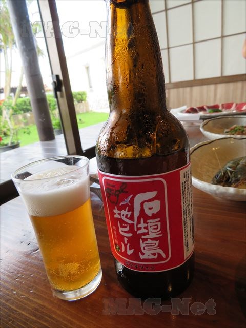 口が脂っこくなると「海ブドウ」のサラダを口に入れ、それを肉とともに「石垣島地ビール」で流し込むのです。