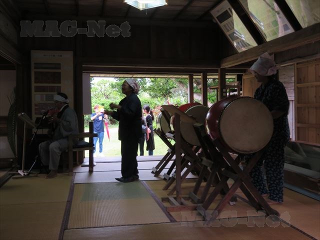 そこでは、「三線(さんしん)」と太鼓を使った舞踊が行われています。