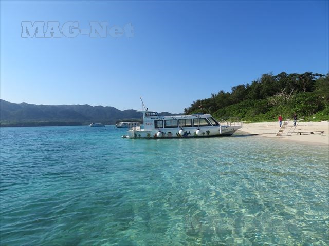 浜にはグラスボートが並び、陸を先頭に船は浜に乗り上げています。