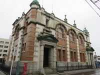 アーチ窓や御影石のバルコニーなど贅沢な造りは、石炭で栄えた町の財政を司る金融機関だったことを示しています。