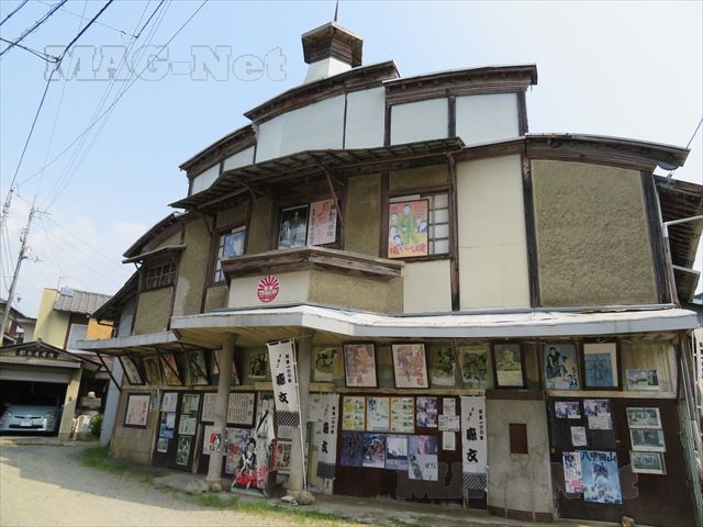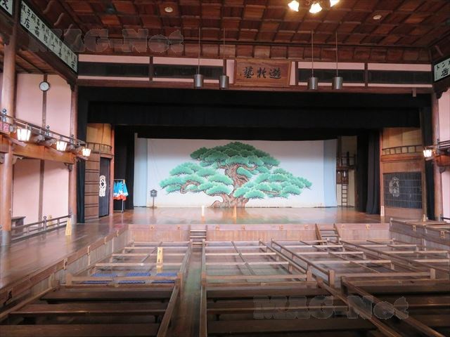 木造2階建ての入母屋造りで、回り舞台をもつ本格的な芝居小屋です。