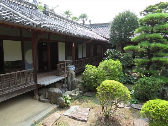 庭が解放されていて、緑豊かな庭から本芳我家の屋敷を眺めることもできます。