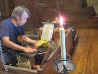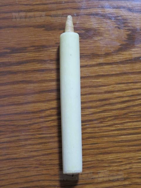 竹串を回しながら蝋燭の太さになるまで、少しずつ蝋をつけていきます。