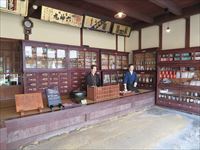 奥に入ると和室で床間で客の相手をする主人、家族との食事風景、お勝手で食事の支度をする女将さん、そして薬を調合する様子が、本物のような人形を使って再現されています。