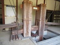 また作業小屋には、ハゼの実を煮たものから木蝋を絞り出すための圧搾機が残されています。