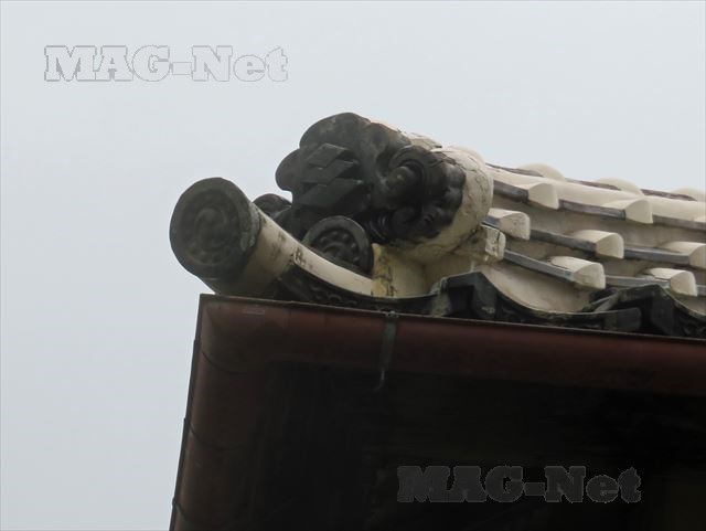 生家の鬼瓦には岩崎家の家紋である「三階菱」の印がはいっていますが、これと山内家の家紋である「三ツ柏」を合わせたものから「九十九商会」の船旗記号になり、それが現在の三菱グループのスリーダイヤモンドのマークになったのです。