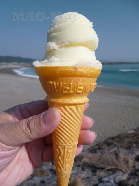 「アイスクリン」はシャーベット状のクリームで、サクサクしていて、口に入れるとスッと溶けて、甘い味が口いっぱいに広がります。