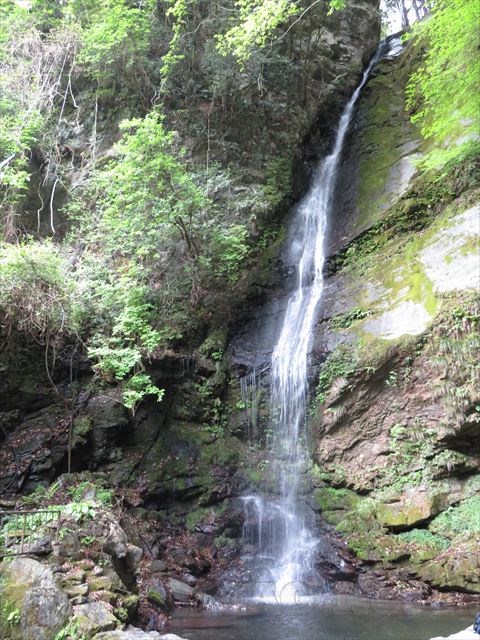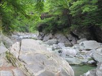 「琵琶の滝」の水が川に注ぐところから、川辺に下りることができます。