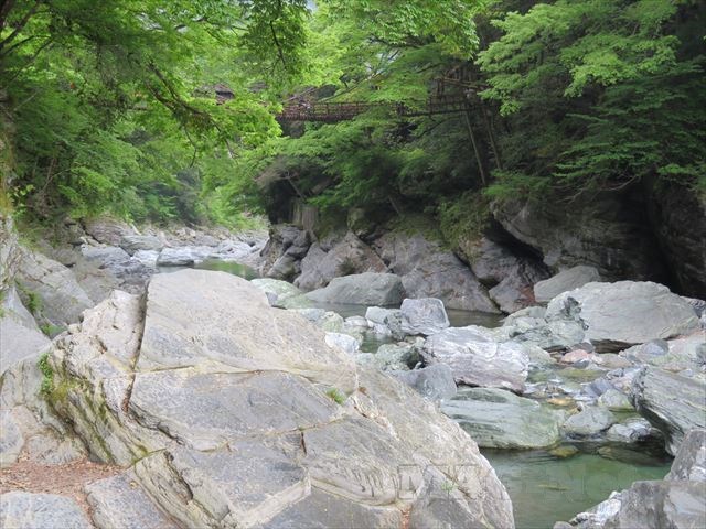 5月の連休での訪問で、「かずら橋」の入口まで列ができるということでしたが、連休最終日だけあって並ぶことなく橋に辿り着くことができます。