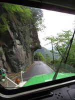 細く曲がりくねってた坂道を、バスはエンジンの限界まで大きな音をあげて進みます。