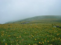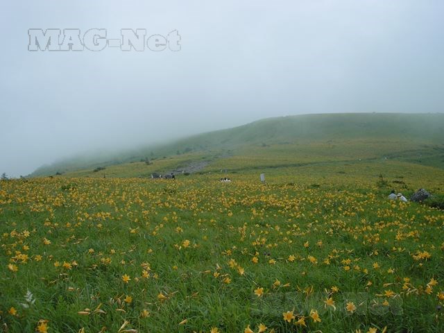 車山高原の当たりに、山一面ニッコウキスゲで覆われた風景が。