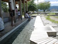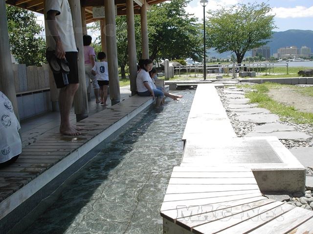 諏訪湖でのお薦めは、間欠泉のでるという間欠泉センター。 ここは公共の建物ですぐに判ります。 そしてその横にあるのが、足湯なのです。 流れてくる湯に足を漬けておく、無料の温泉です。