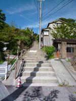 ほどなく歩くと、右手に「長坂」と呼ばれる長い上りの石段が現れます。