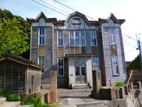 「長坂」の登り口に、木の壁でありながら洋館の形をした建物があります。