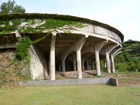 50mもある円形の建物で、泥状の金銀を含んだ鉱石はこの装置で水分を分離する工程を経た後、対岸の浮遊選鉱場へ送られました。
