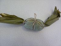 隣では笹の葉を重ね合わせて、今まさに団子を巻いています。
