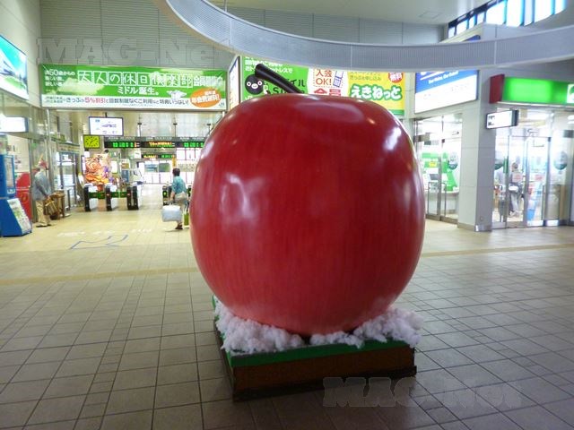 駅の改札を出ると、大きなリンゴが出迎えてくれます。