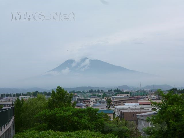 残念ながら昨日からの雨があがったばかりで、山頂そして麓に雲がかかっています。