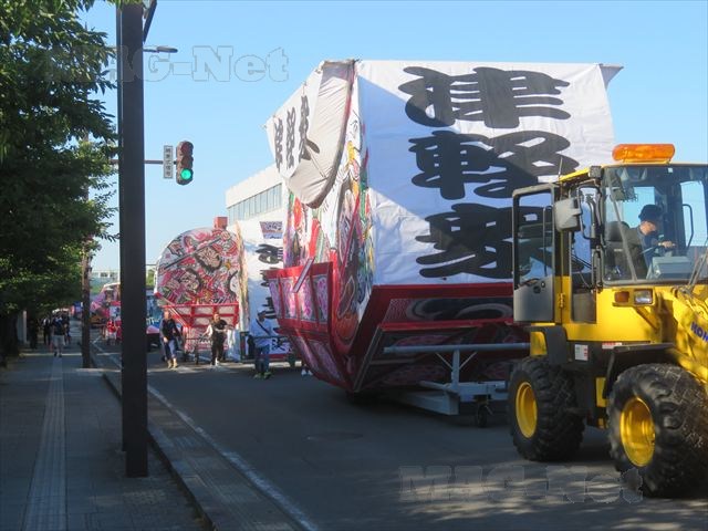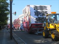 外にはねぶた祭りに備えて、山車が列をなして運ばれて行きます。