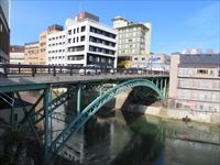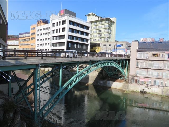 電車に揺られて着いたのは飯坂温泉駅で、駅に降り立つと摺上川の両岸にへばりつくように温泉街が広がっています。