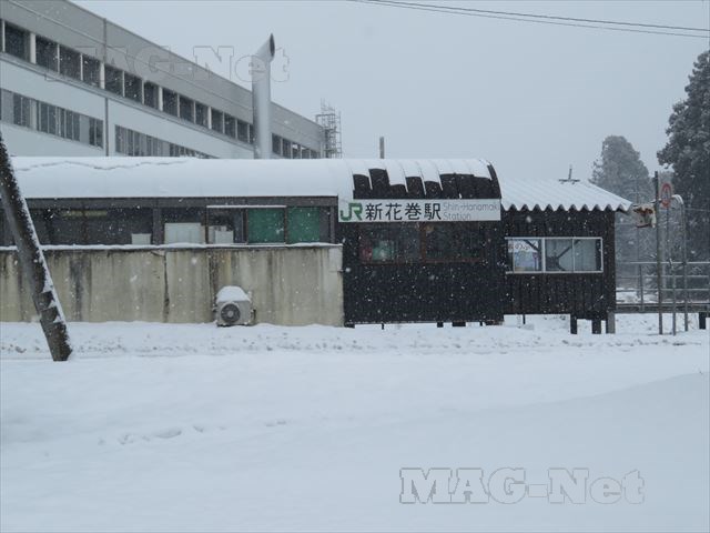 地図で見るとすぐそこのように見えた花巻・新花巻間ですが、雪景色の中をひたすら電車は走ります。