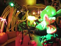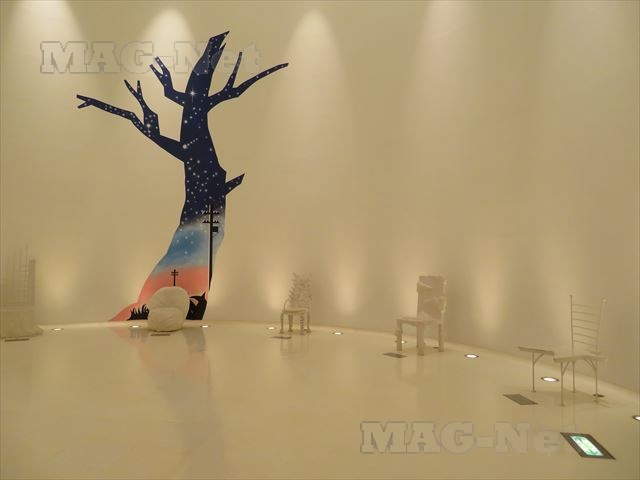 中は5つの部屋で区切られ、ファンタジックホールは「賢治の椅子」が置かれた不思議な空間や、巨大な万華鏡の中に放り込まれたような宇宙の部屋、雲間からイーハトーブの大地を覗く天空の部屋、巨大で奇妙な昆虫や草木がうごめく大地の部屋、そして水のゆらめきの中にいる錯覚を起こさせる水の部屋から成ります。