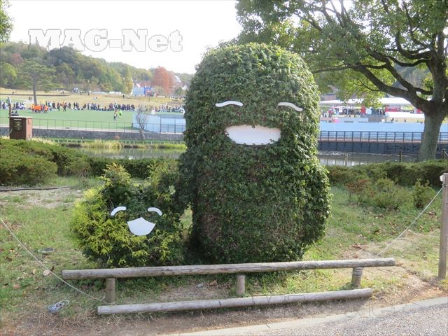 植木を巧みに剪定して作られた「もりそう」と「キッコロ」が出迎えてくれます。