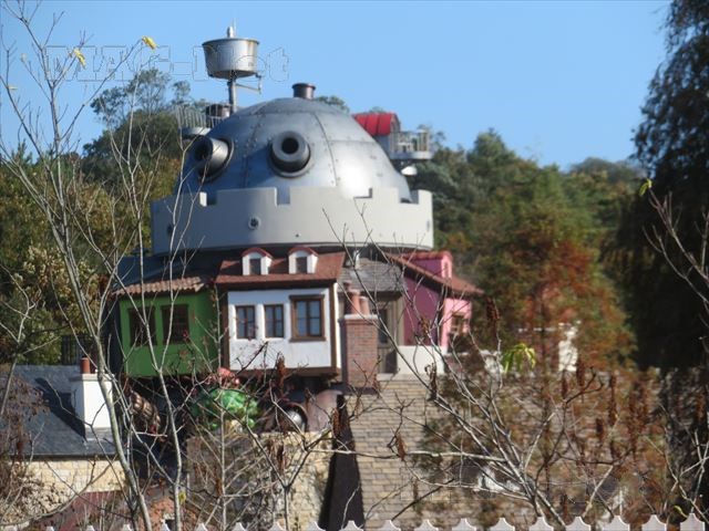 エレベータは「天空の城ラピュタ」や「ハウルの動く城」に代表される空想科学的な世界観をもとにしたエレベーター塔として造られています。