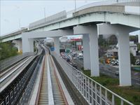 高架を走るタイヤを履いた乗り物で、電車特有のガタンゴトンといった音や揺れはありません。