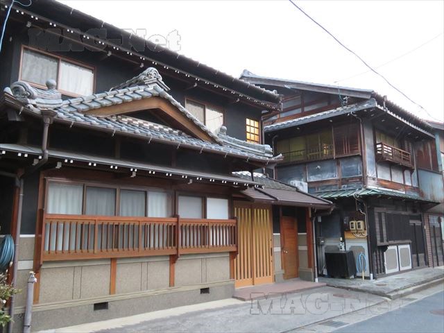 街道沿いには、古い街並みが続きます。