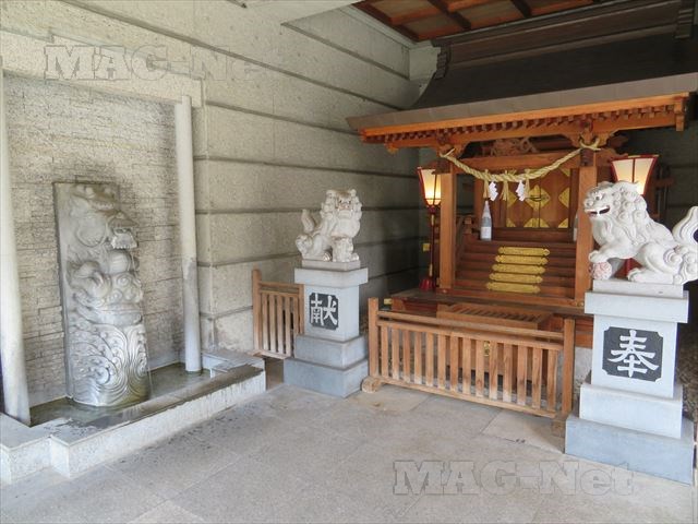 ビルの1階に造られた神社で、まわりをコンクリートで囲まれた超近代的なところです。