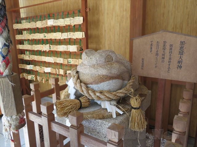 カエルの文字の通り、拝殿にはカエル像が鎮座しています。