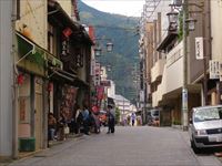 「湯の島宿」の門を潜り、賑やかな通りに出ます。