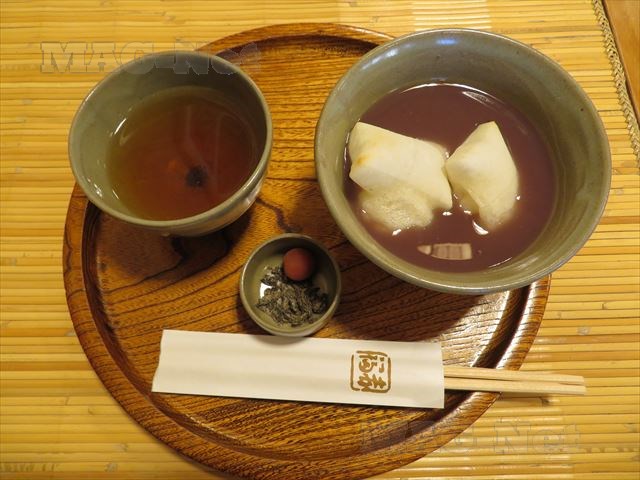 小豆が沈む甘い汁に焼き立ての餅が入っています。