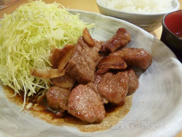 ソースの浸みた山盛りのキャベツも、肉に良く合います。
