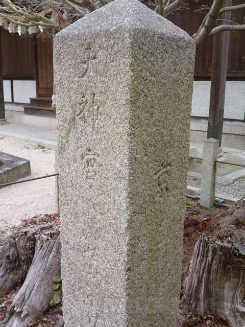 「日永の追分」に1656年に建てられたものですが、1849年に新たな道標を建てた際に「日永神社」に移され、現存する日永の追分に関わるものとしては最も古いものです。