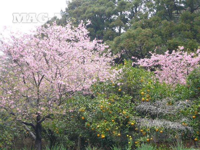 さて河津七滝(かわづななたる)のバス停では、早咲きの桜が花をつけています。