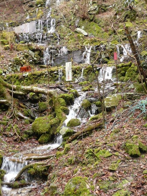 滝の脇には湧水が噴出しています。