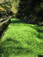途中、水生地や清水を必要とするわさび田を横目で見ながら、国道までの散策を楽しみます。