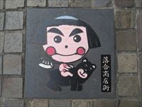途中の落合商店街には、金太郎を模ったタイルが歩道に埋め込まれています。