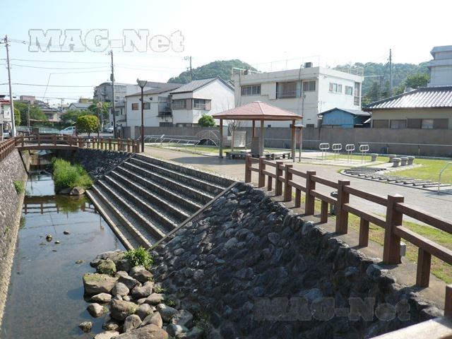 温泉街を南北に通る道路を、小川に沿って歩いてみます。