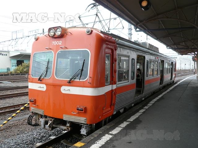 ほどなくして到着した電車は、先頭が流線型のオレンジ色の車両です。