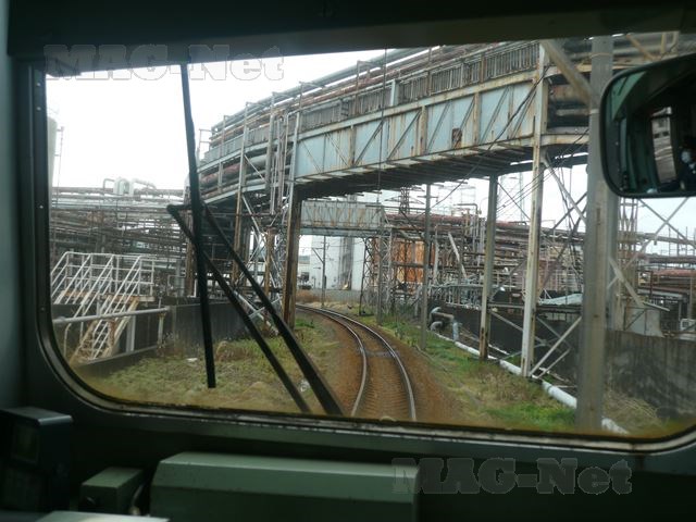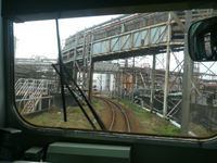 今度は製紙工場の間をぬけて、電車は曲がりくねった線路を走ります。