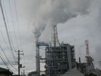 駅を降りて周りを見渡しても、白い煙をもくもくと噴き上げる製紙工場の高い煙突があちらこちらに見えます。